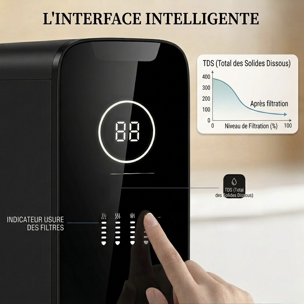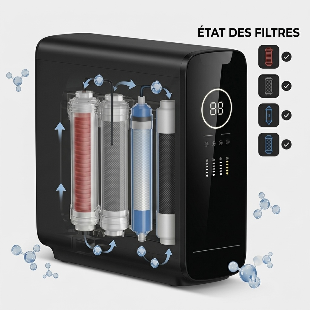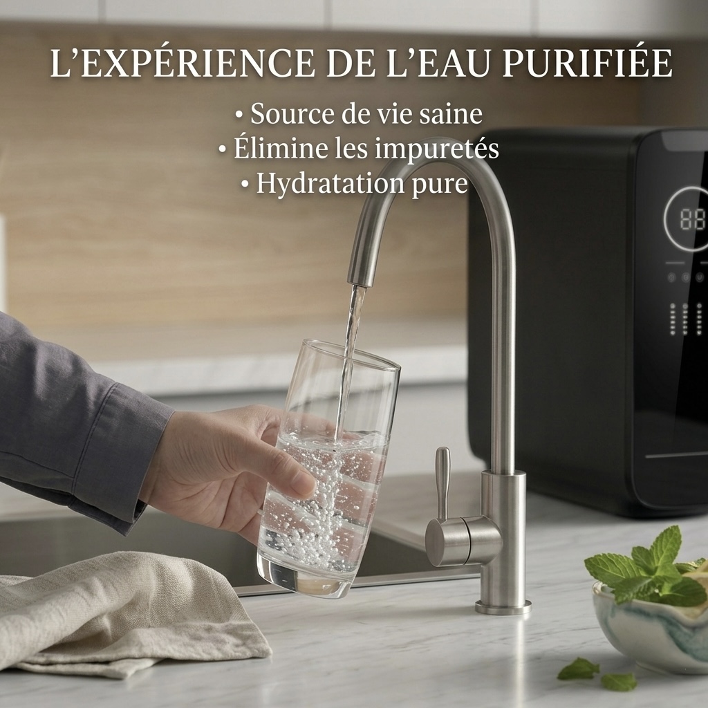 Avec un débit rapide de 2,2 à 2,5 L/min, il répond aux besoins des familles actives. La technologie d’auto-nettoyage de la membrane et la mise en veille automatique assurent une longévité exceptionnelle à l’appareil. Installation et entretien sont facilités par nos tutos vidéo pas à pas. Un investissement haute technologie garanti 2 ans pour une sérénité totale.